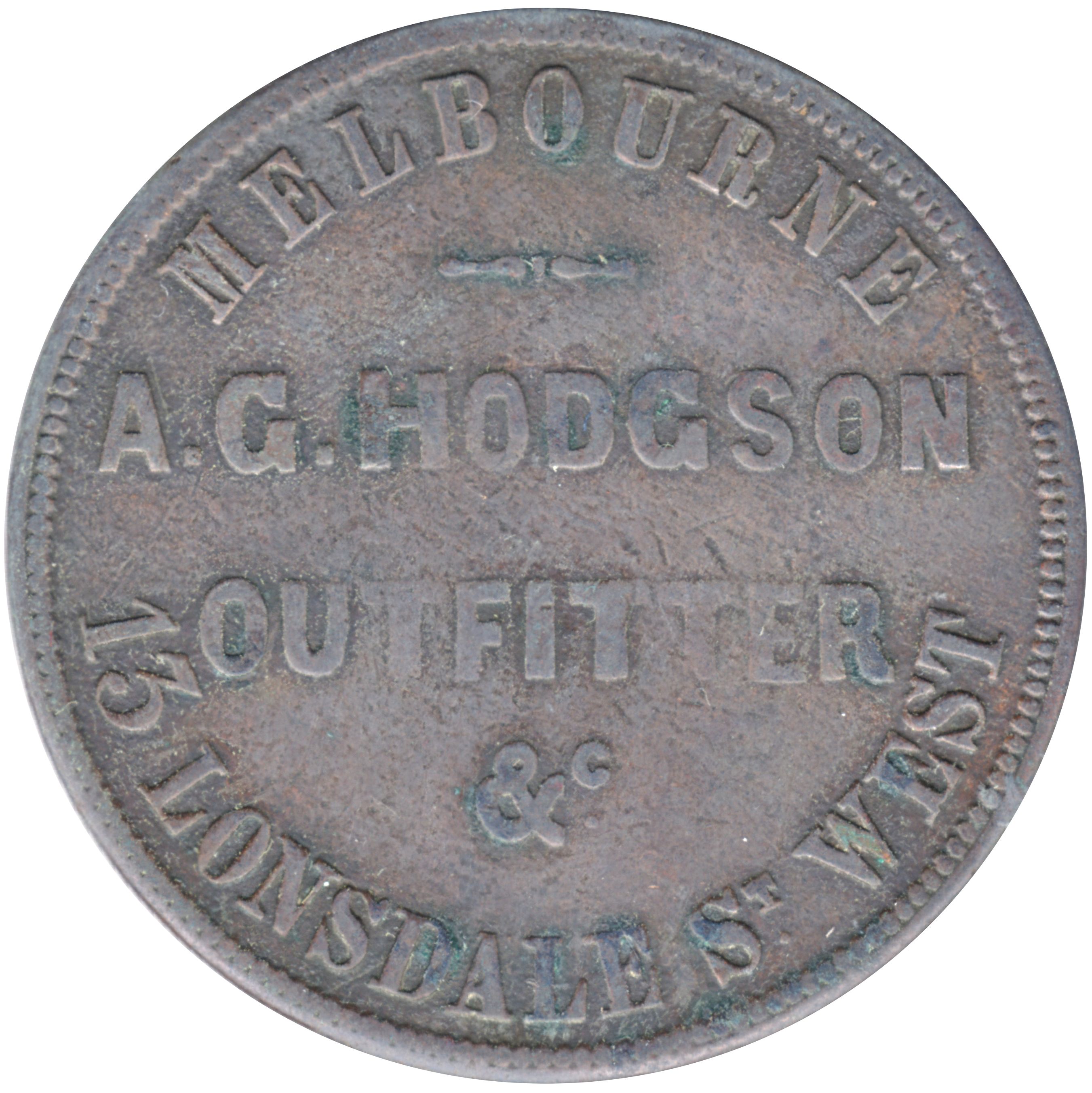 1 пенні — А. Г. Ходжсон (Лонсдейл-стріт-Вест, Мельбурн; Вікторія) 1862 – 1862 Вікторія