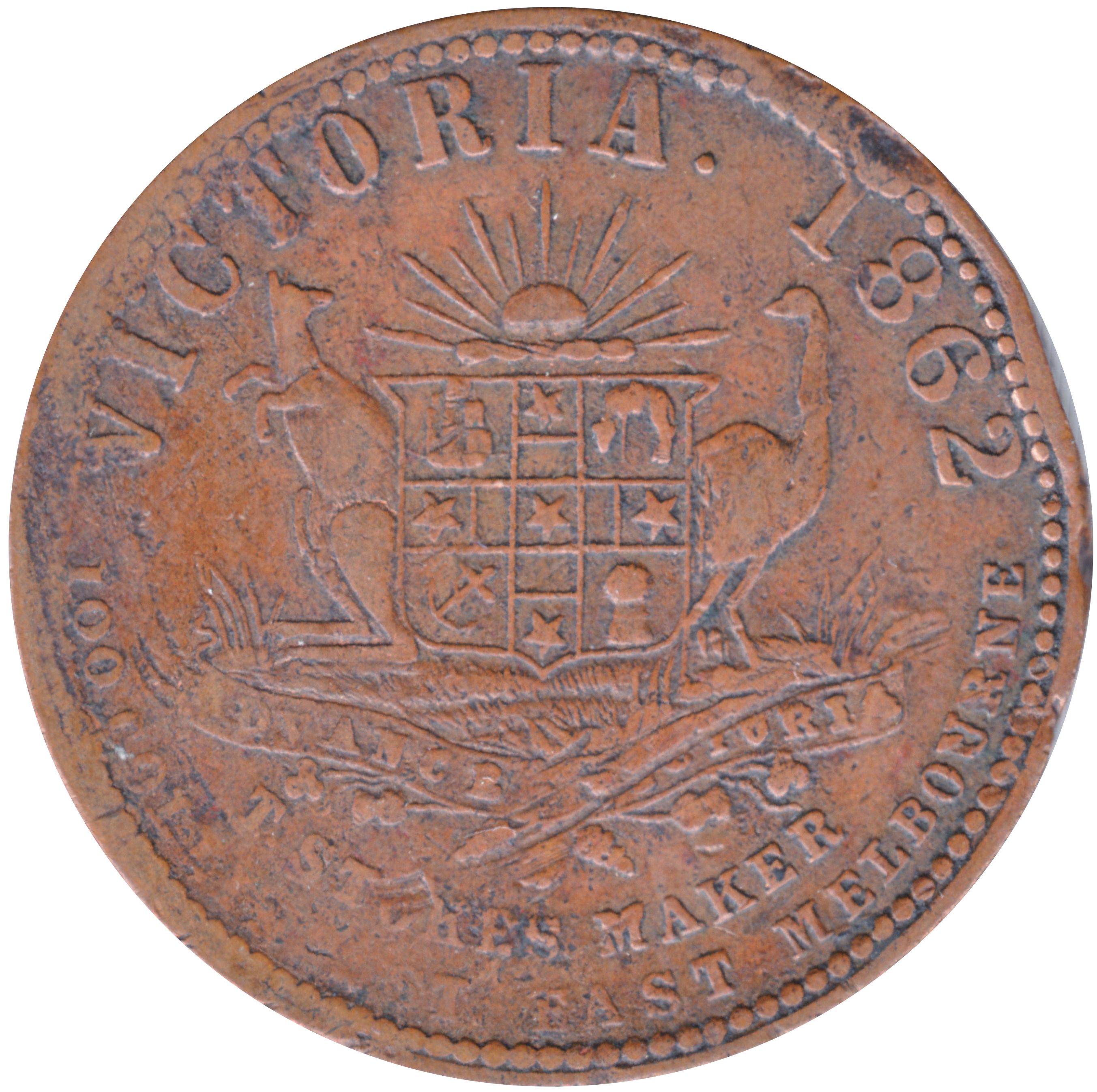 1 пенні — Х'ю Пек (Stokes ARMS — Мельбурн; Вікторія) 1862 – 1862 Вікторія