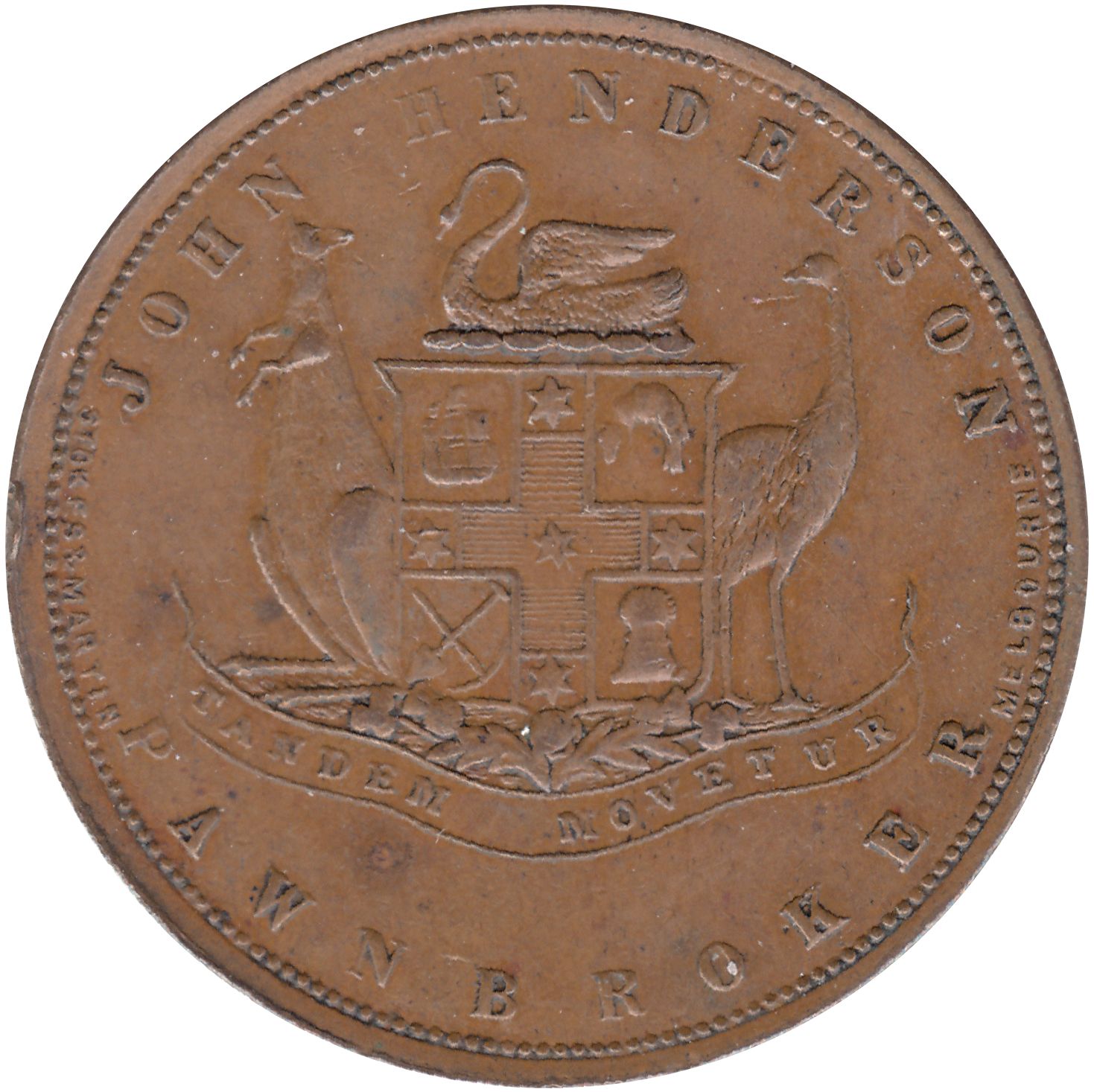 1 пенні — Джон Хендерсон, ломбардист (Фрімантл; Західна Австралія) 1874 – 1874 Західна Австралія