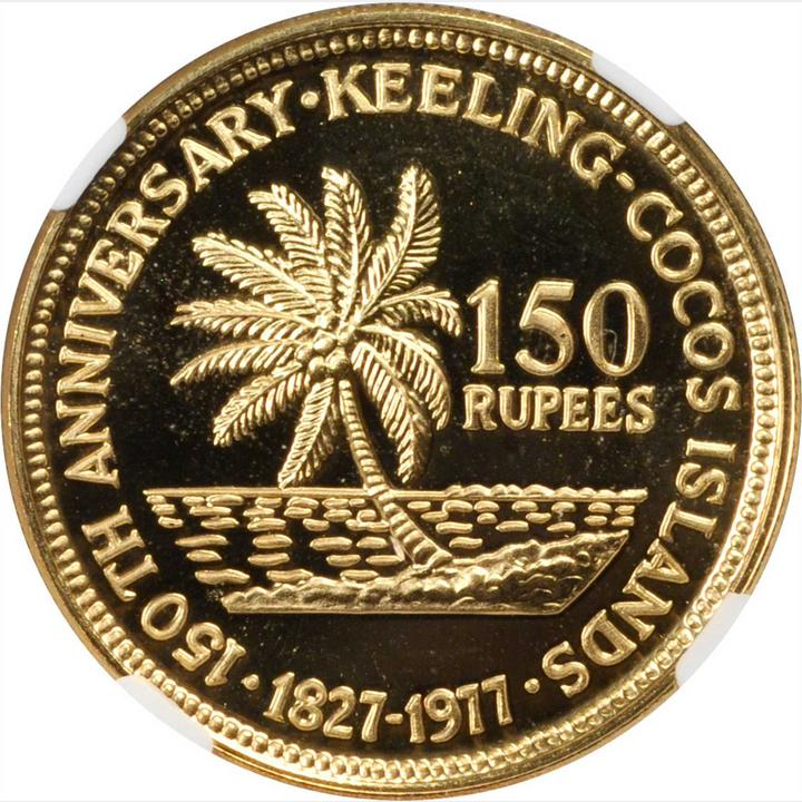 150 рупій (ювілей королівства; 0,916 золота) 1977 – 1977 Кокосові острови