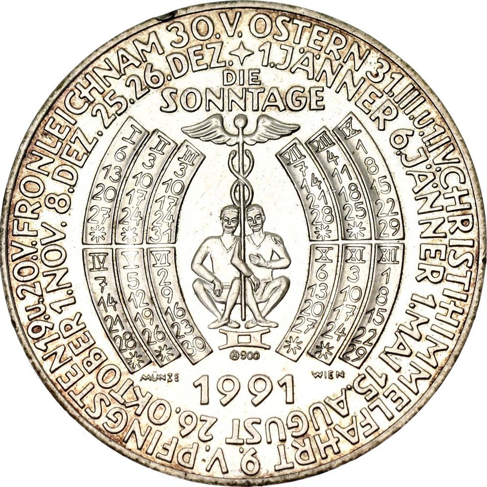 Медаль — Календар 1991 року (Jahresregent Merkur) 1991 – 1991 Австрія