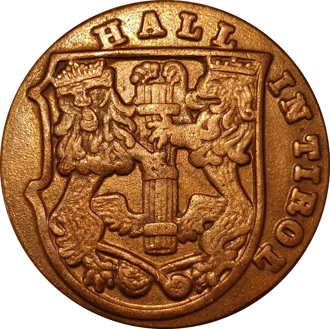 Опис: У центрі зображено контур замку Хазегг, а вздовж верхнього краю написано «Burg Hasegg», а вздовж нижнього — «Münzerturm».