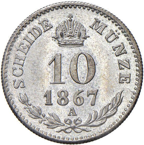 10 крейцерів — Франц Йосиф I (Довга борода) 1867 – 1867 Австрійська імперія