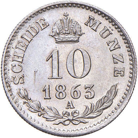 10 крейцерів — Франц Йосиф I (коротка борода) 1858 – 1865 Австрійська імперія
