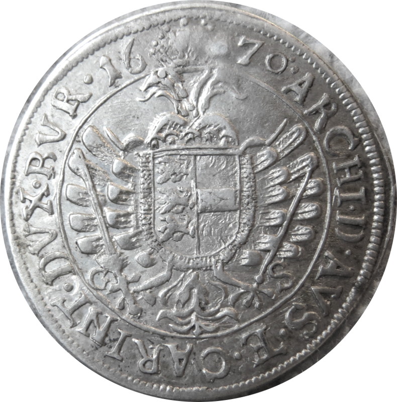 Опис: Коронований двоголовий імперський орел з гербами Каринтії (Kärnten) та Австрії у внутрішньому колі. Корона розділяє дату зверху. Легенда (починається з 2h) для «Archidux Austriae et Carintiae Dux Burgundiae». Монетні знаки з обох боків кігтів орла.