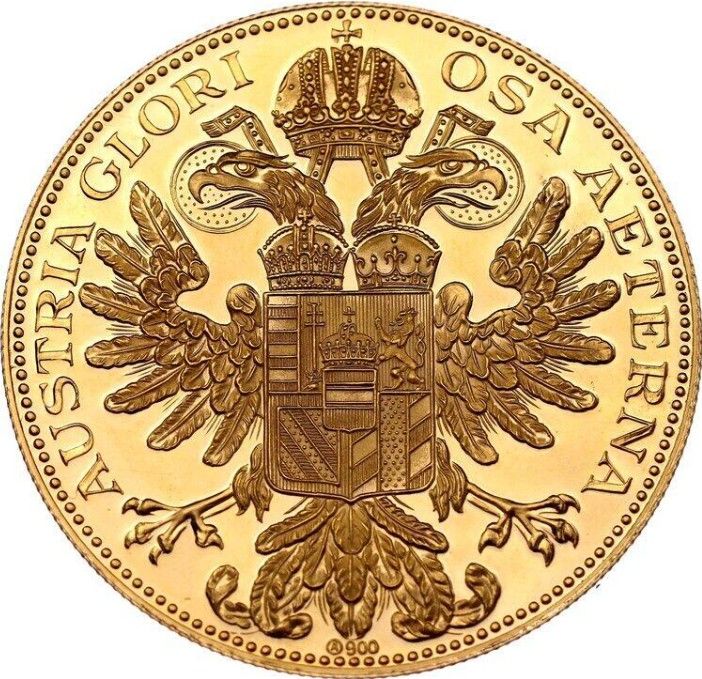 Опис: Коронований двоголовий імператорський орел, на грудях — щит з подвійною короною та комбінованим гербом Угорщини, Богемії, Бургундії та Бургау, у центрі — менший коронований щит Австрії. Навколо — напис, внизу — проба.