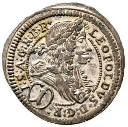 Опис: Портрет Леопольда I Габсбурга в лавровому вінку в колі, верхня частина голови виходить за межі кола. Номінал внизу в рамці, що розділяє напис «Lеопольдус ді Грація Романорум Імператор Германії Угорщини Богемії Рекс».