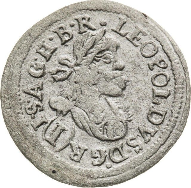 Опис: Портрет Леопольда I Габсбурга в лавровому вінку, звернений праворуч, номінал римськими цифрами в легенді на 7-й годині.