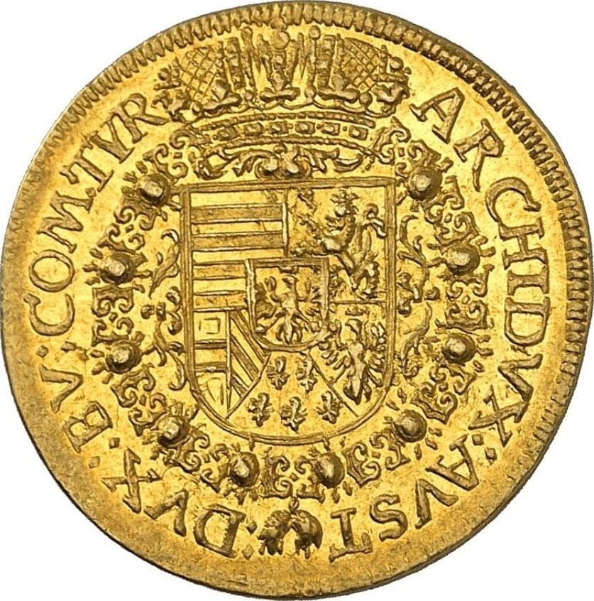 Опис: Портрет у обладунках із кучерявою перукою, звернений праворуч, ланцюг ордена Золотого руна на грудях. Верхня частина голови та задня частина бюста розділяють легенду. Внутрішнього кола немає.