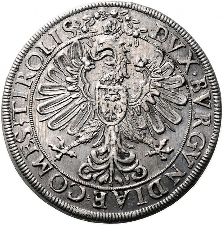2 талери — Фердинанд II (посмертно; зал) 1564 – 1604 Тіроль, графство