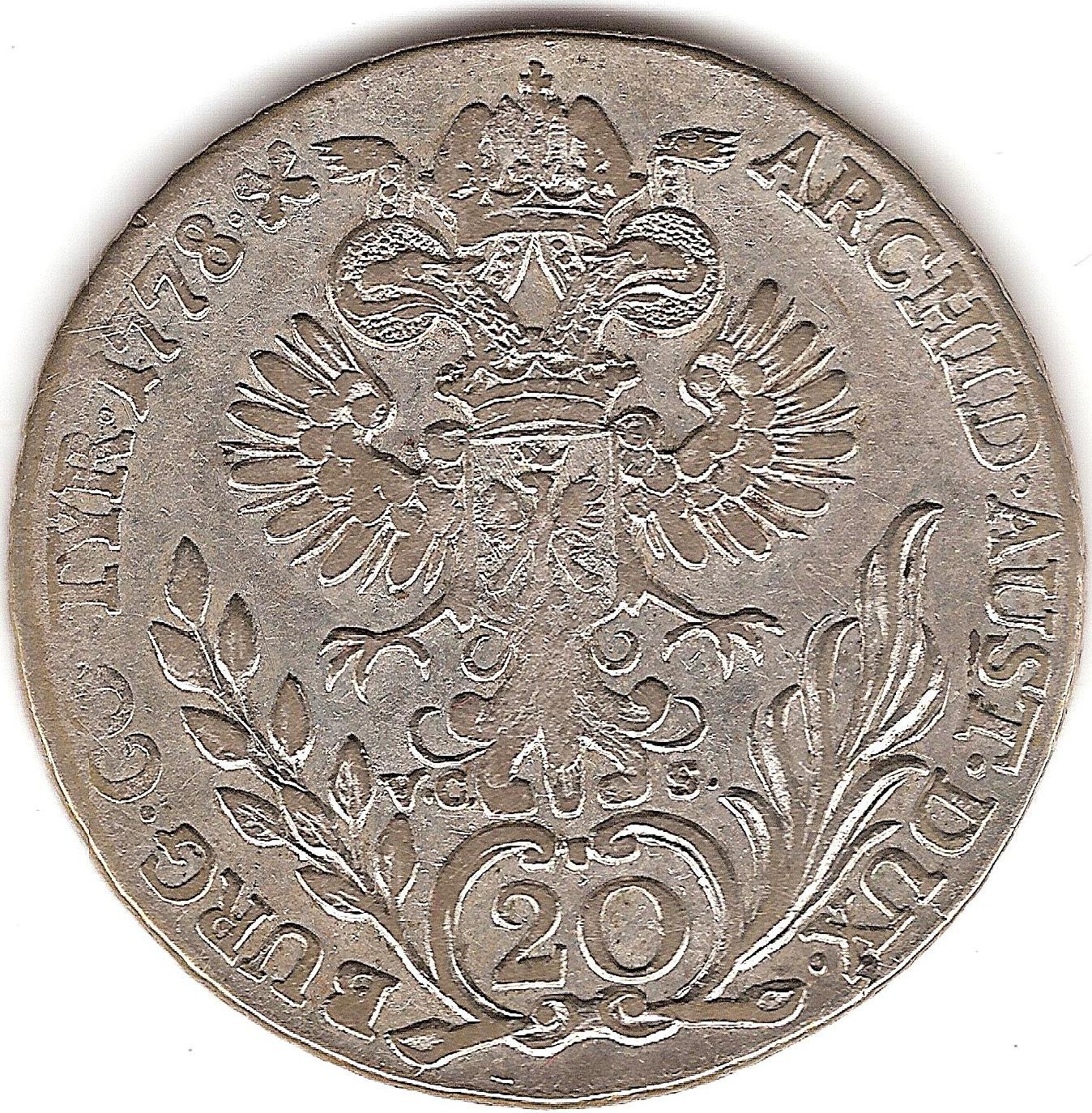 20 крейцерів — Марія Терезія (Зал) 1768 – 1780 Тіроль, графство