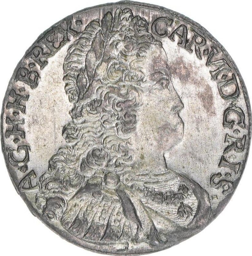 Опис: Бюст Карла VI Габсбурга, звернений вправо. Навколо — легенда (починається з 1h). Голова розділяє легенду.