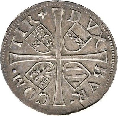 Опис: Портрет Фердинанда II Габсбурга в обладунках у половинному розмірі, який тримає скіпетр у правій руці та меч у лівій, у внутрішньому простому колі, розділеному короною. Арабескові орнаменти на торсі.