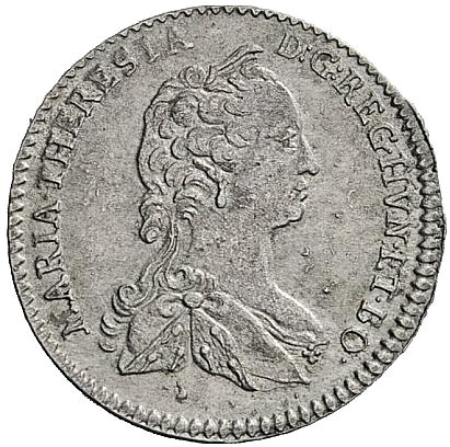 Опис: Бюст Марії Терезії, звернений праворуч, навколо — легенда (починається о 7 годині).