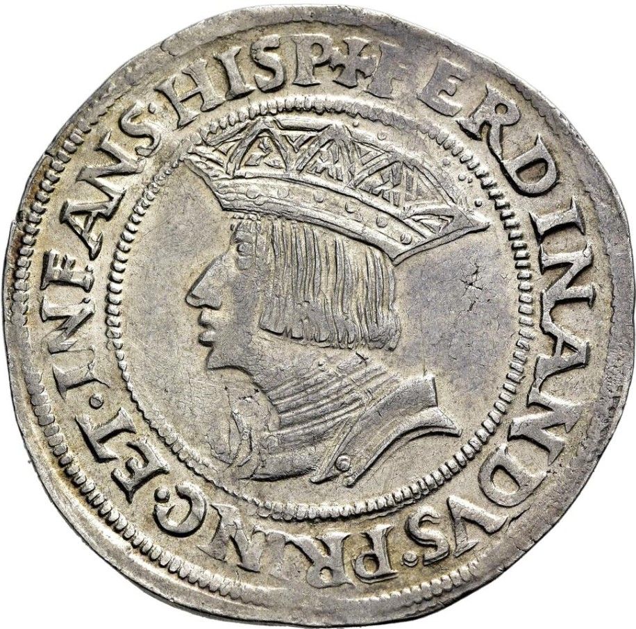 Опис: Коронований портрет молодого Фердинанда I без бороди в намистовому внутрішньому колі. Напис навколо (починається о 12 годині).