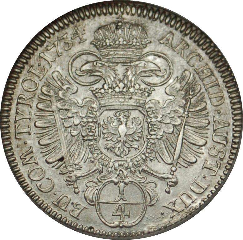 ¼ талера — Карл VI (Хол) 1734 – 1734 Тіроль, графство