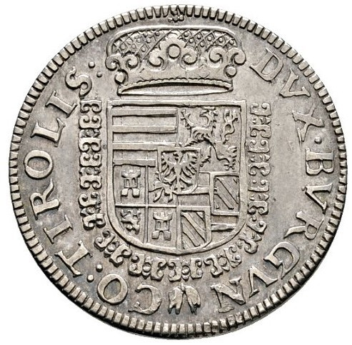 Опис: Коронований герб на плоскому щиті, невеликий щит Тіролю в центрі, без внутрішнього кола.