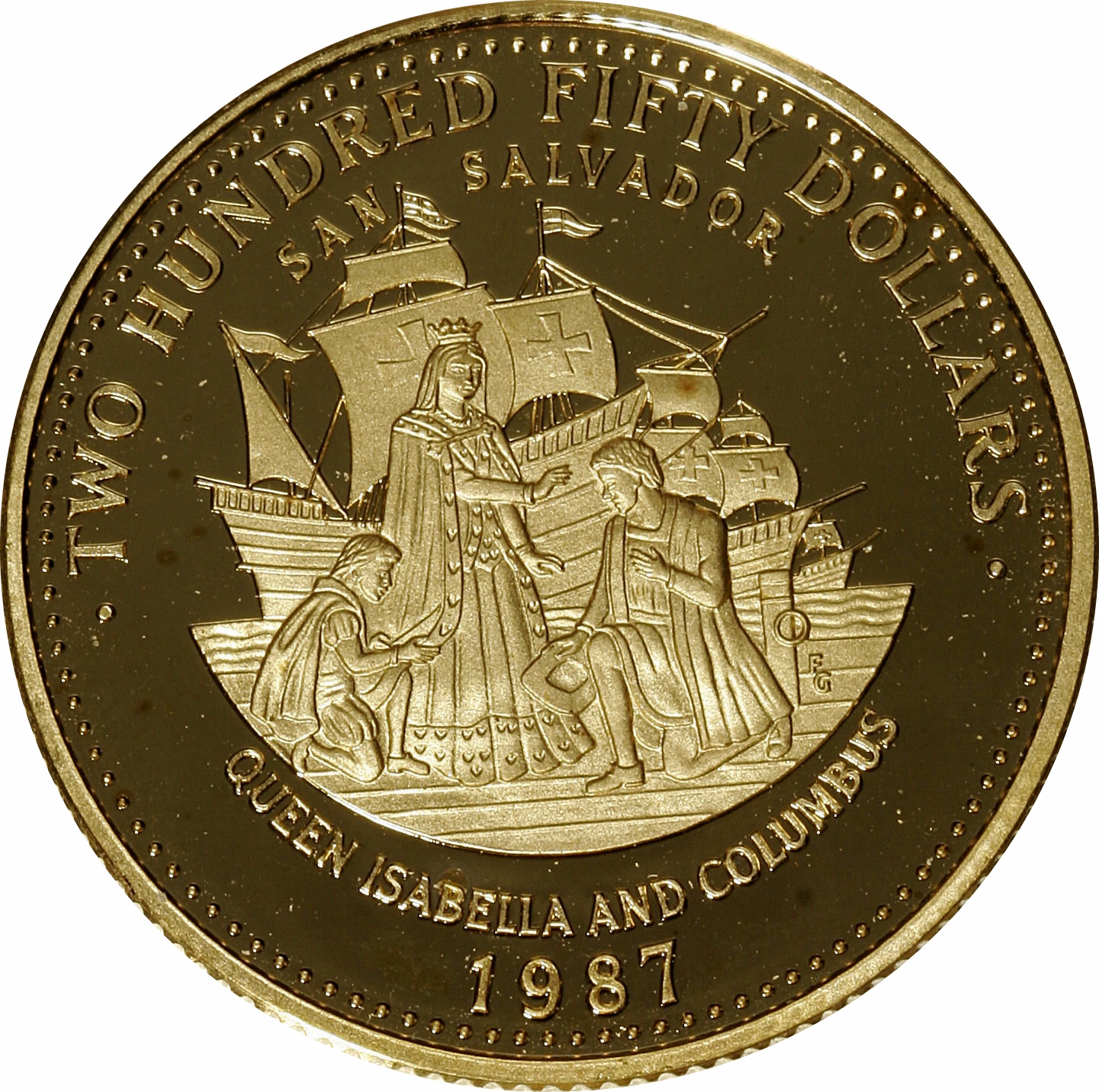 250 доларів (королева Ізабелла та Христофор Колумб) 1987 – 1987 Багамські острови