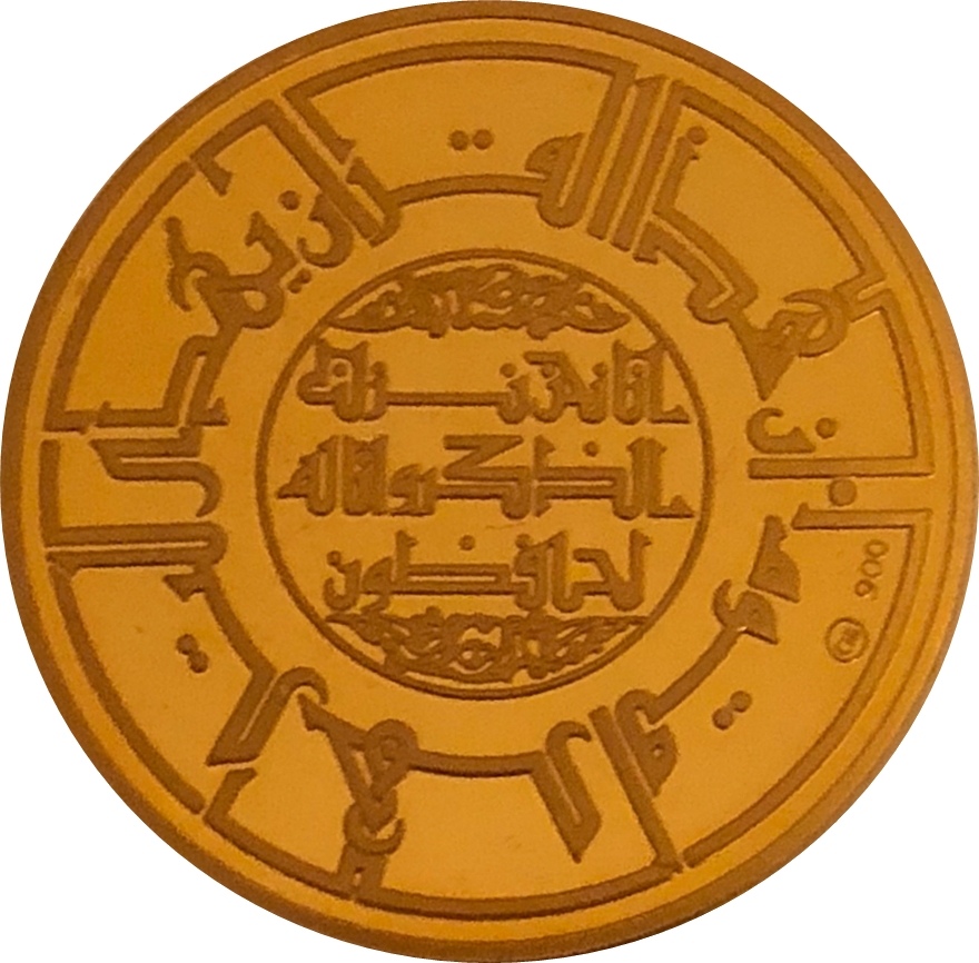Опис: 2 вірші з Корану, 1 всередині кола та 1 навколо. Монетний знак «CHI» та проба золота.