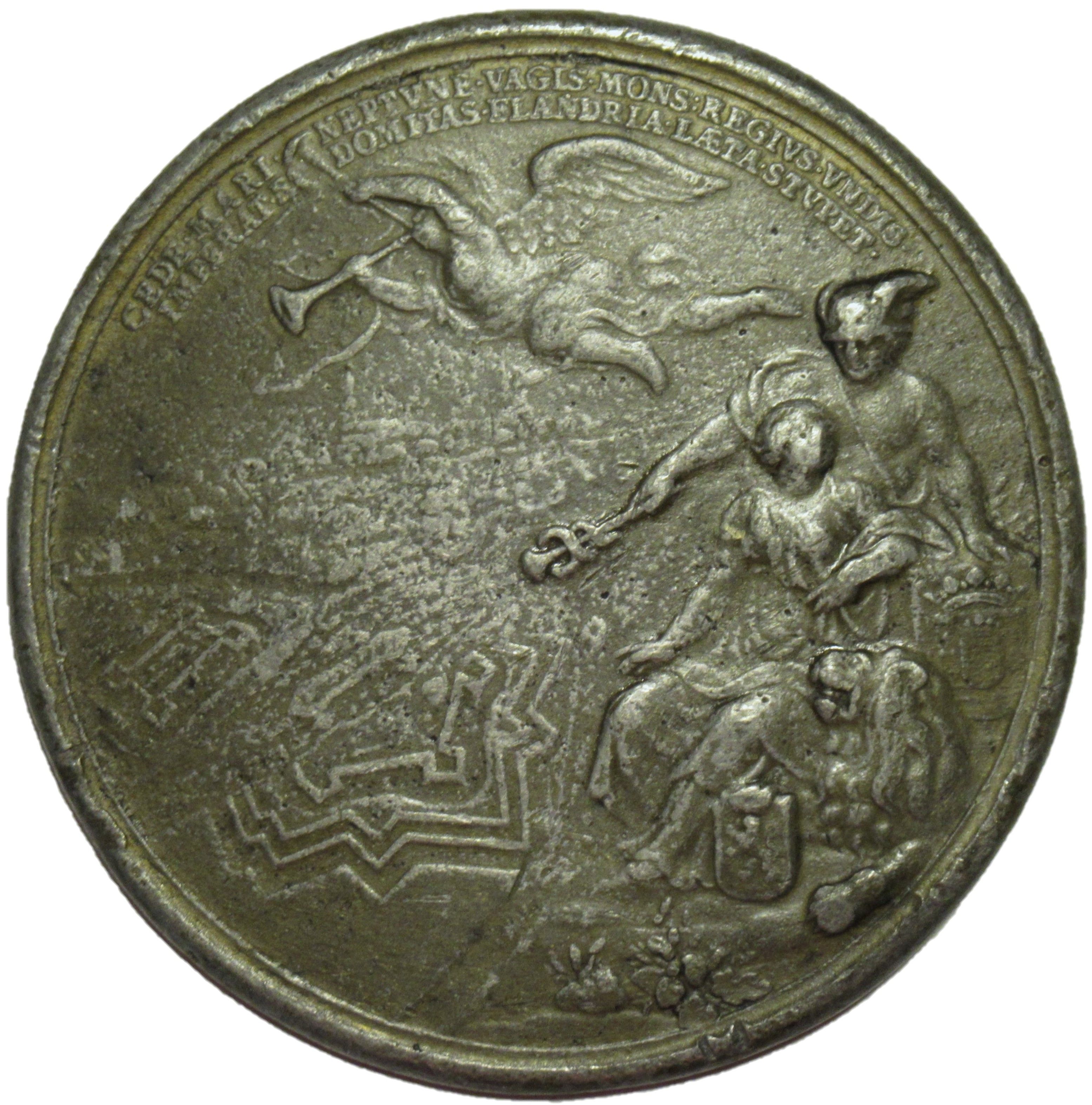 CEDE• MARI• NEPTVNE• VAGIS• MONS: REGIVS• VNDIS• IMPERAT• ET• DOMITAS• FLANDRIA• LÆTA• STVPET•