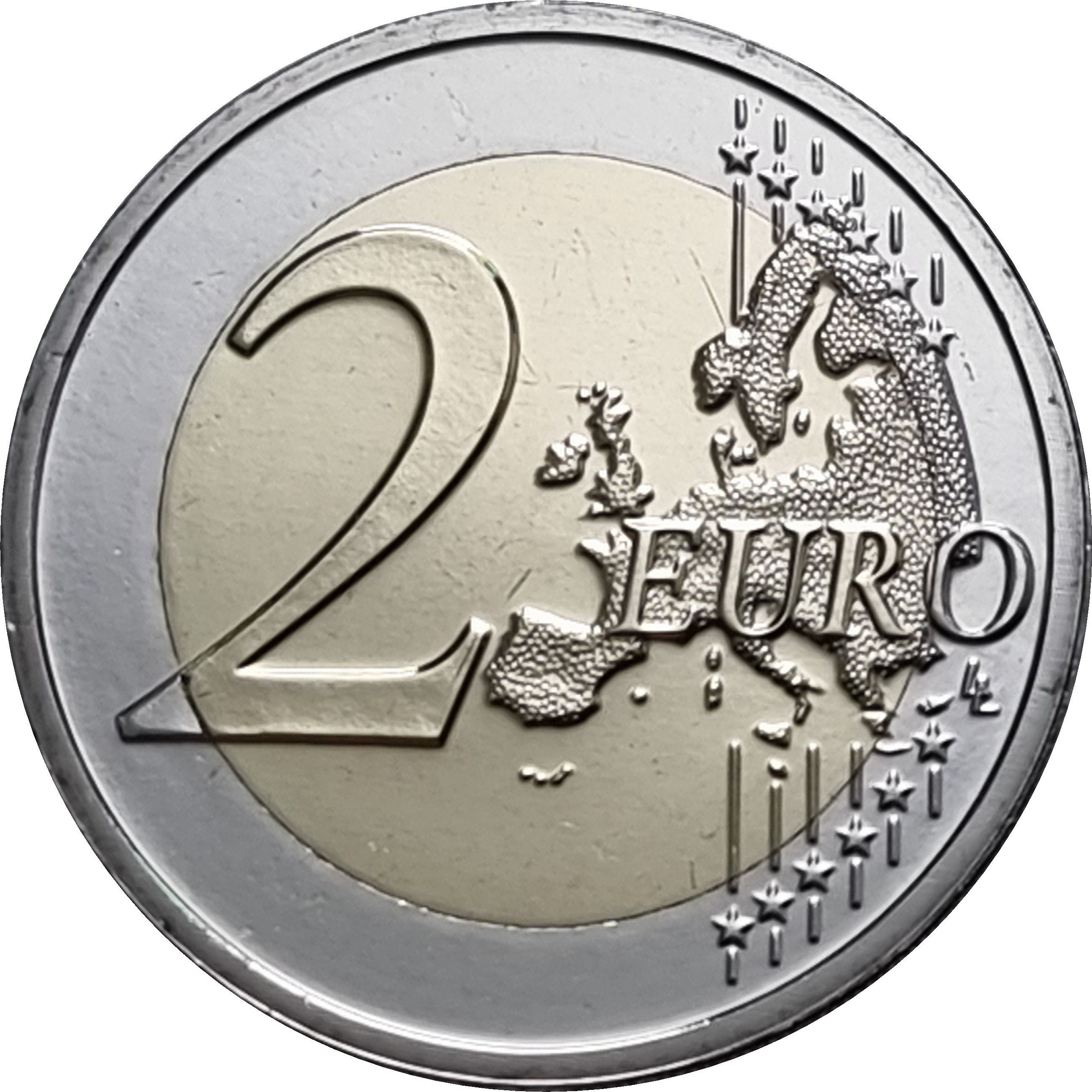 Опис: Географічна карта Західної Європи займає зовнішнє кільце та внутрішнє ядро на правій стороні монети. Напис «2 EURO» накладено на карту Європи, а цифра «2» розташована у відкритому полі, що символізує східну частину Атлантичного океану. 12 зірок розташовані на правій стороні зовнішнього кільця: шість зірок над картою Європи і шість зірок під нею; шість вертикальних смуг перетинають внутрішнє ядро монети, візуально з'єднуючи верхній і нижній сегменти зірок.