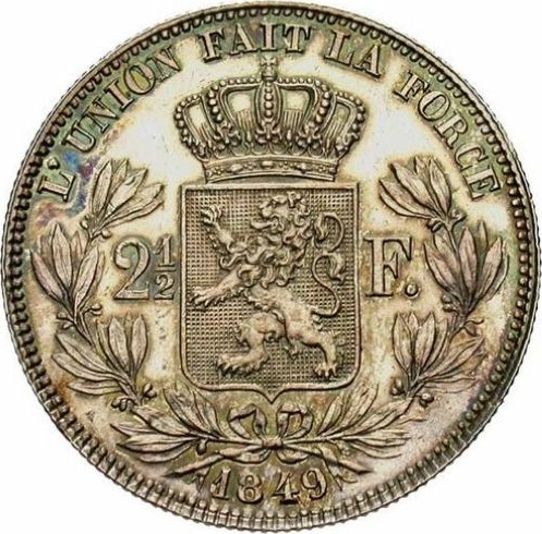 2½ франки — Леопольд I (велика голова) 1848 – 1865 Бельгія