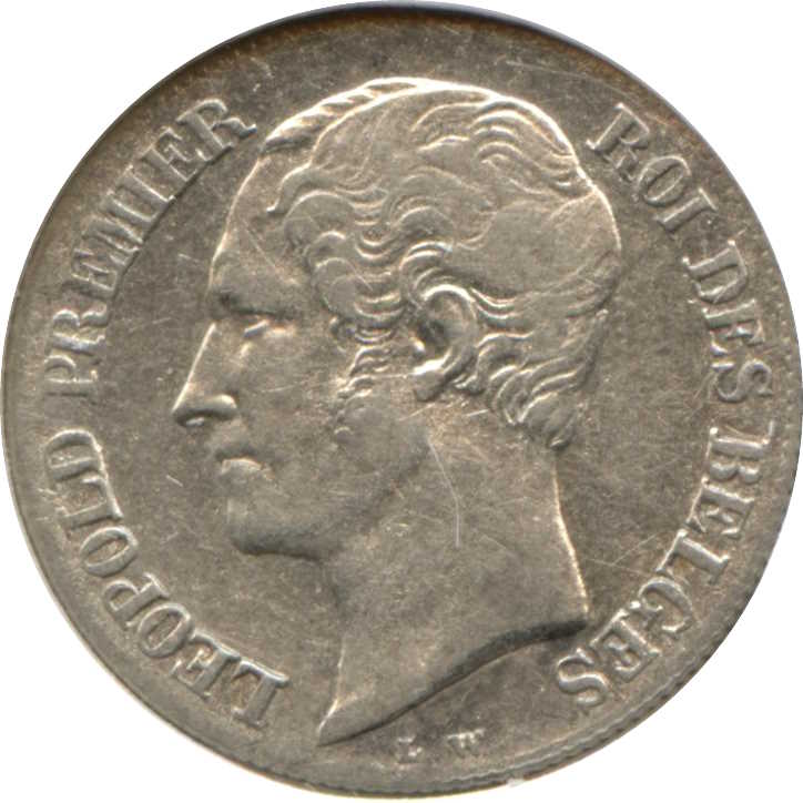Опис: Портрет Леопольда I Бельгійського в лівому профілі оточений написом французькою мовою. Ініціали дизайнера внизу.