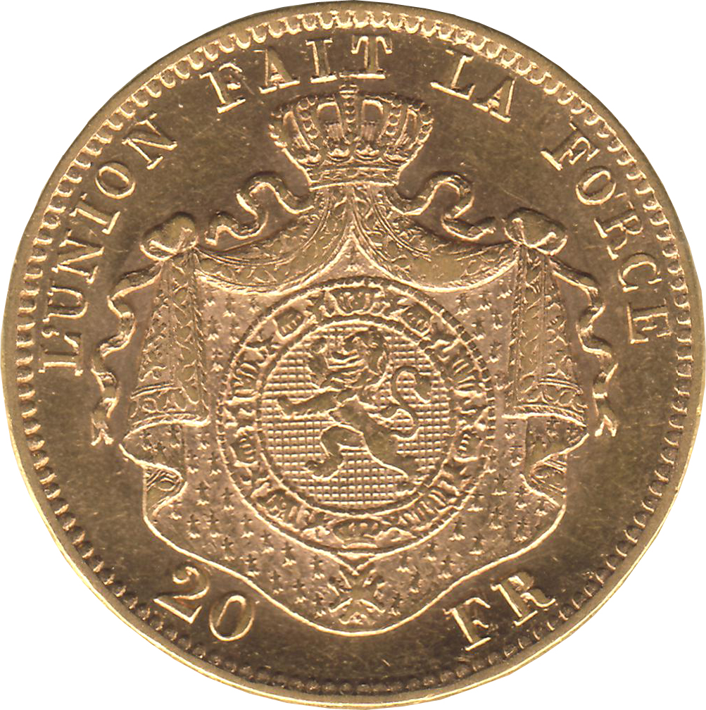 20 франків — Леопольд II (з більш тонкою бородою) 1870 – 1882 Бельгія