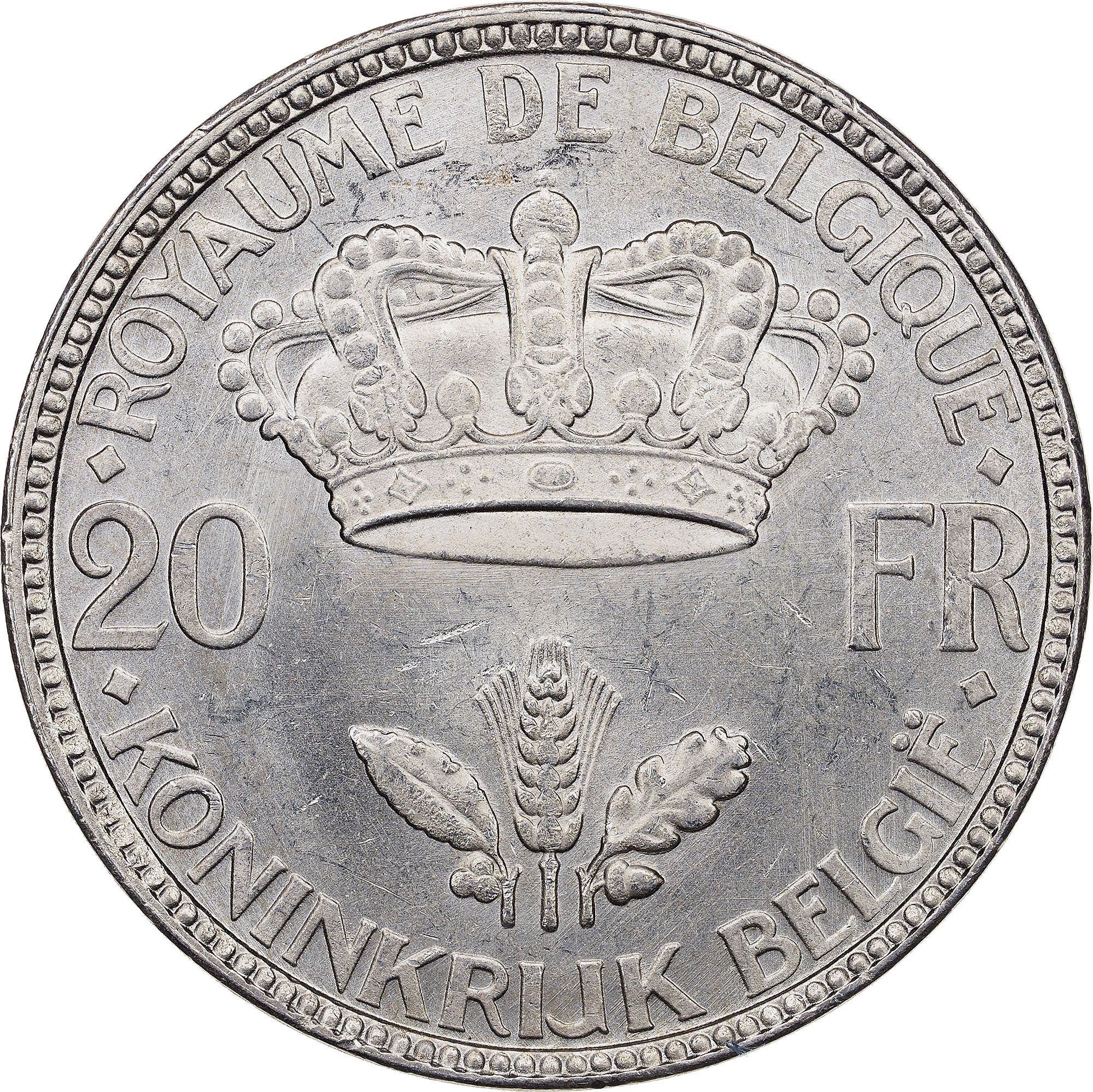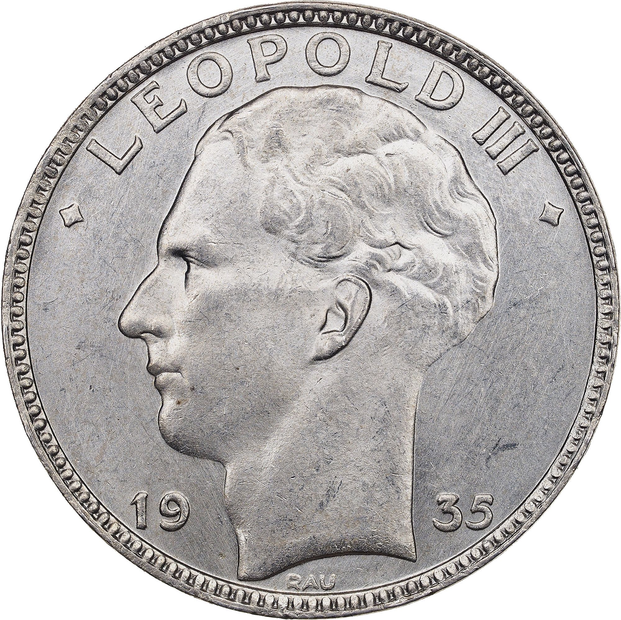 Опис: Голова короля Леопольда III, звернена вліво, розділяє дату. Назва зверху, ім’я дизайнера знизу.