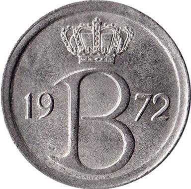 25 сантимів — Бодуен I (голландський текст) 1964 – 1975 Бельгія