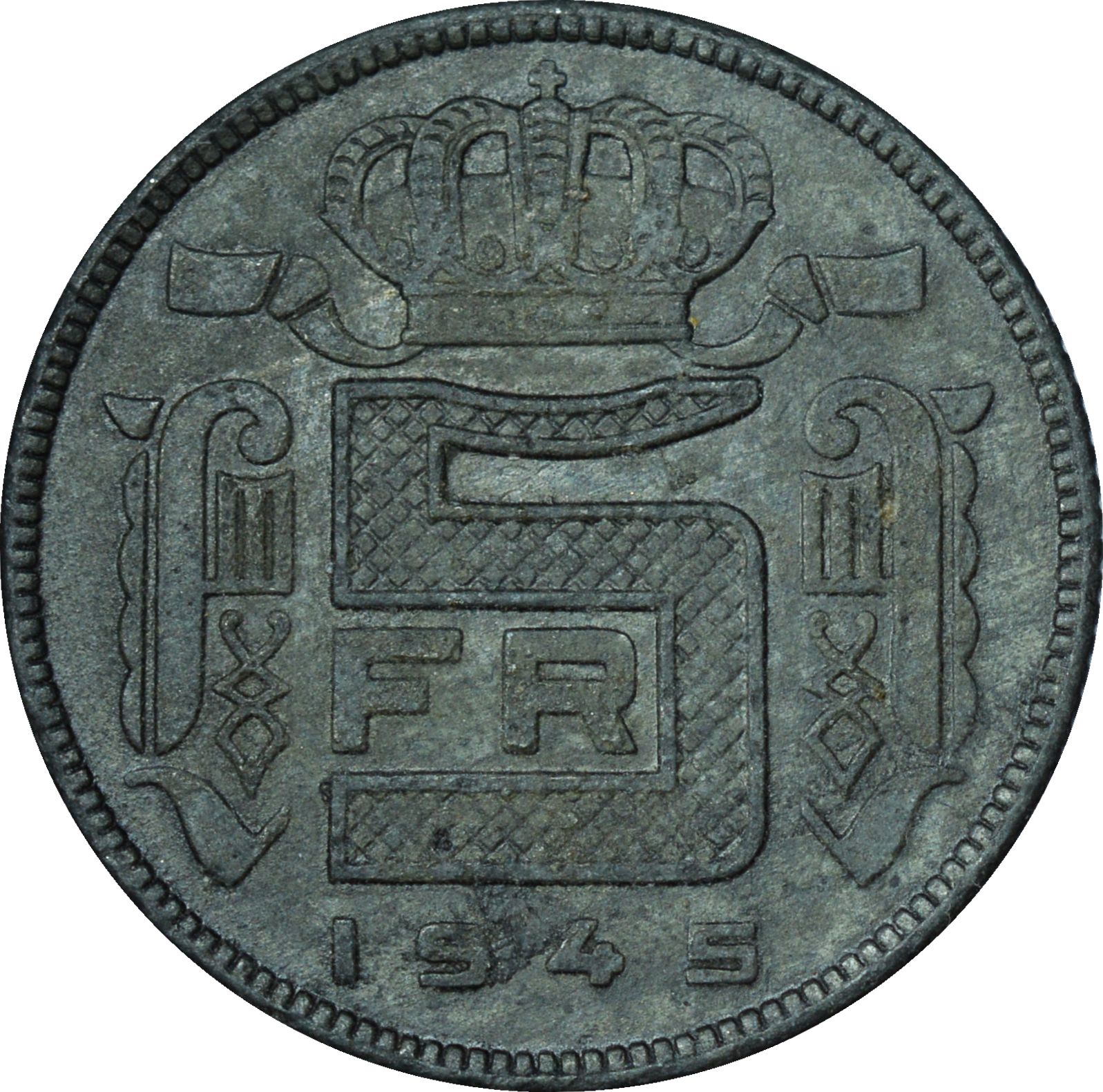 5 франків — Леопольд III (голландський текст) 1941 – 1947 Бельгія