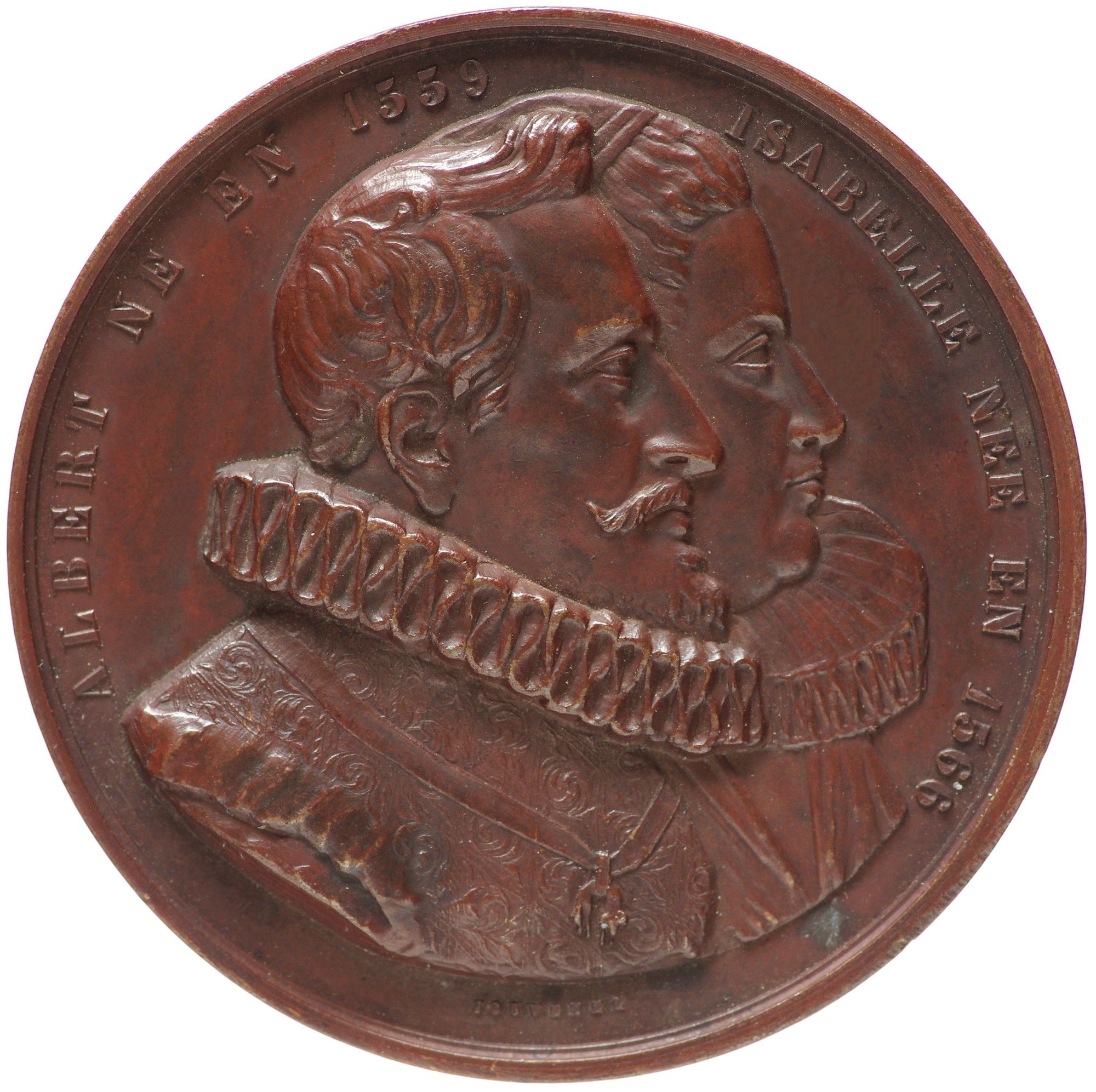 Опис: Прямі портрети ерцгерцога Альберта Австрійського, а за ним — інфанти Ізабель-Клер-Ежені Австрійської.