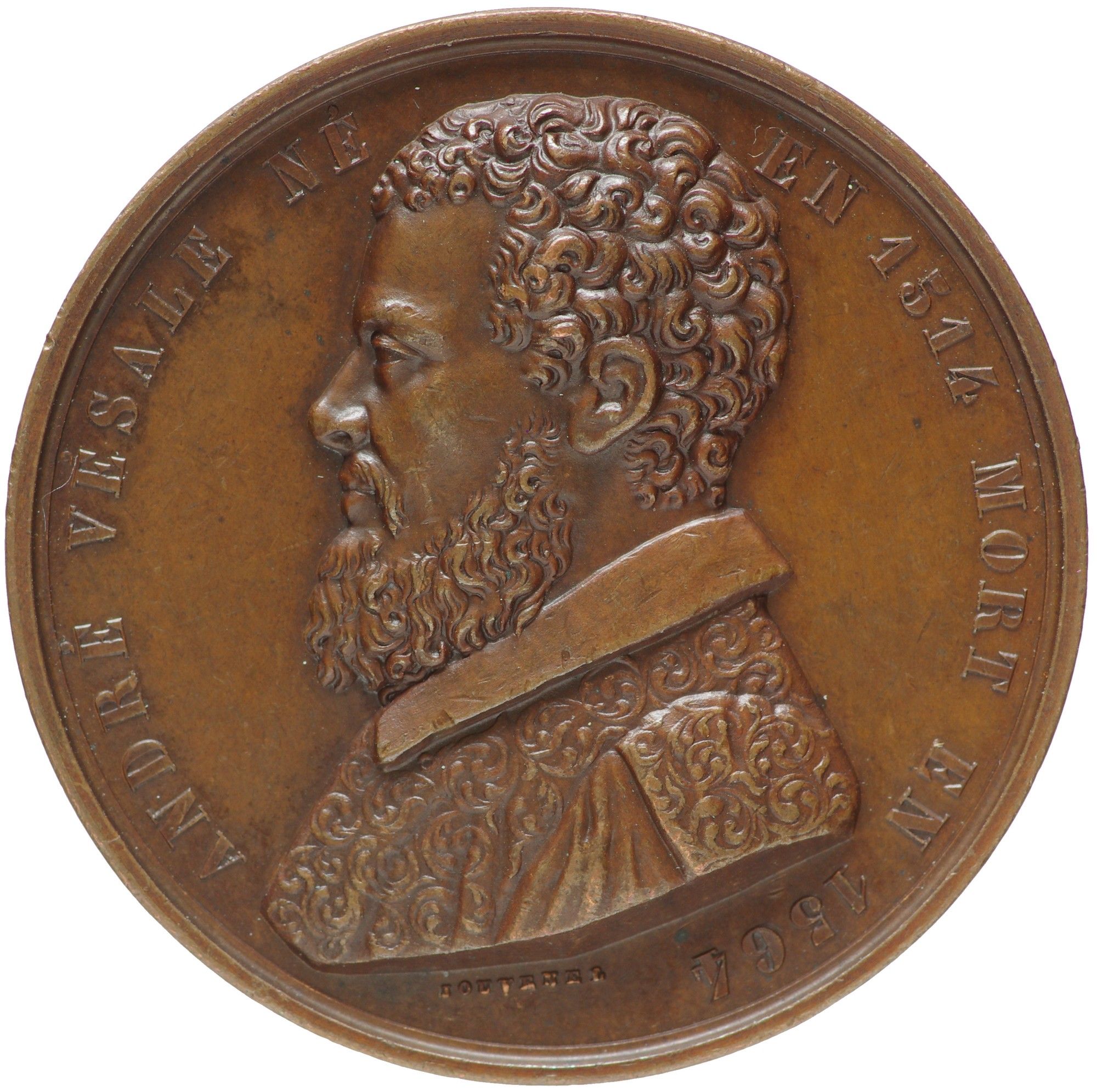 Опис: Зліва — бюст анатома та хірурга Андре Везаля в історичному костюмі.
