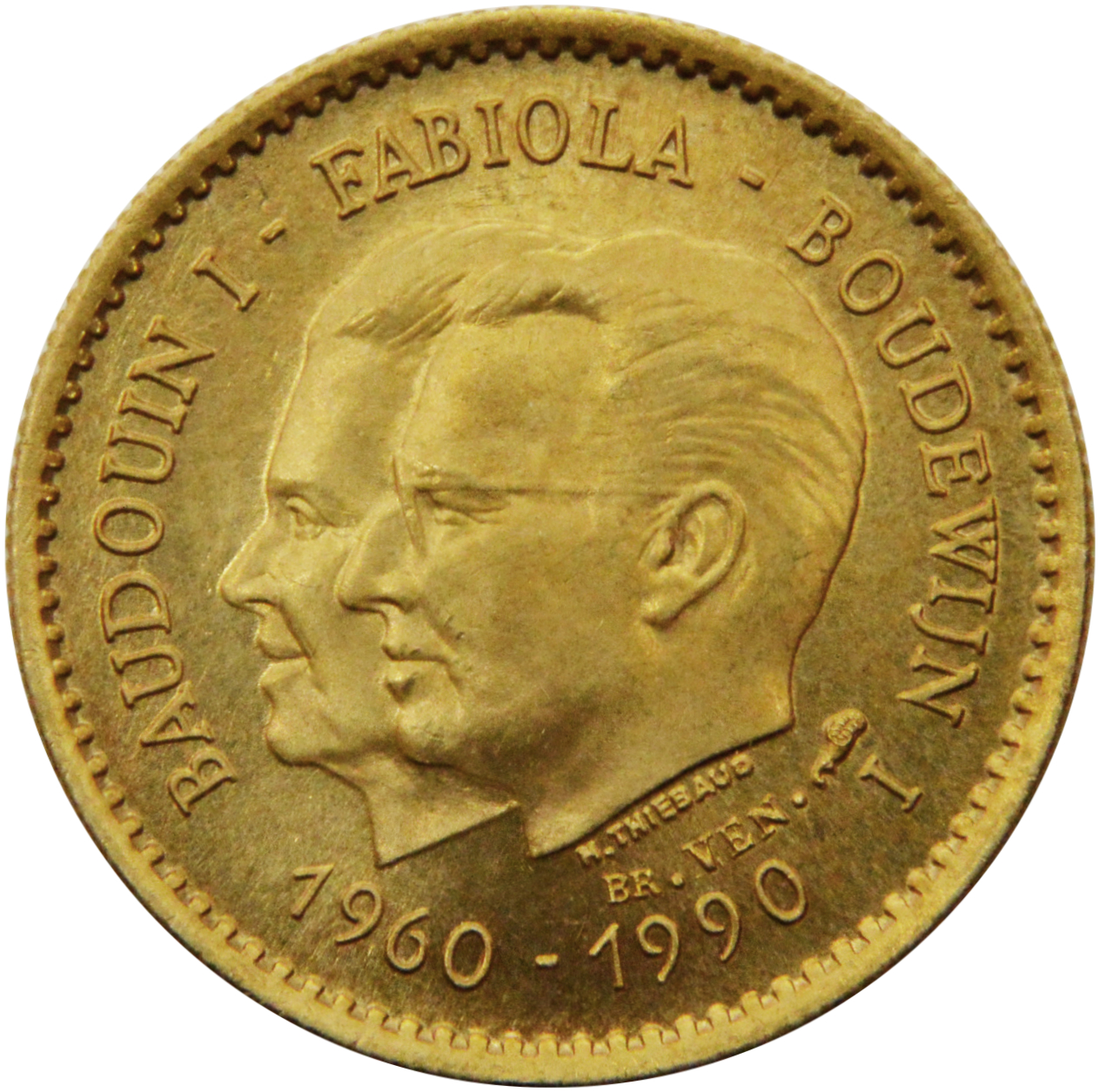 Медаль — Бодуен I і Фабіола (30 років шлюбу; латунь) 1990 – 1990 Бельгія