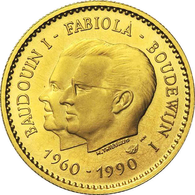 Медаль — Бодуен I і Фабіола (30 років шлюбу; золото) 1990 – 1990 Бельгія
