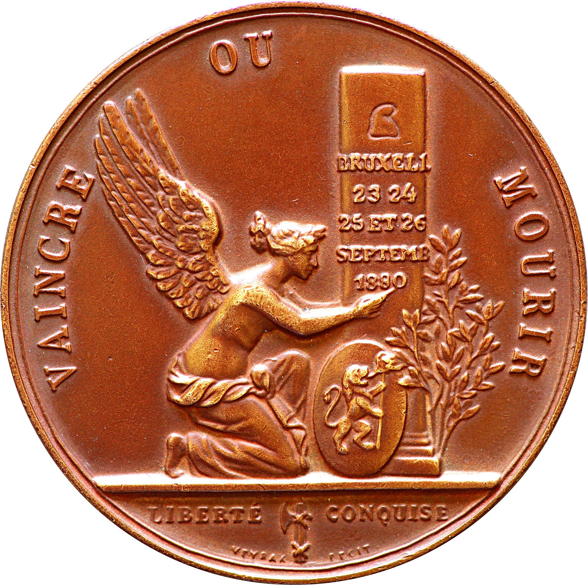 VAINCRE OU MOURIR / BRUXELL(ES) / 23 24 / 25 ET 26 / SEPTEMB(RE) / 1880 / LIBERTE CONQUISE / VEYRAT FECIT