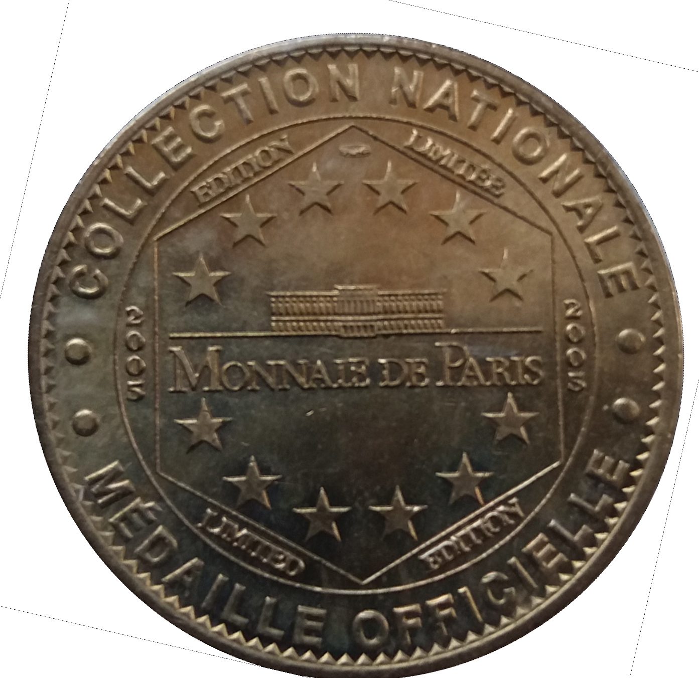 Опис: У шестикутнику — будівля та назва La Monnaie de Paris. Напис на 2 верхніх сторонах шестикутника: «Edition Limitée», те саме англійською мовою під 2 нижніми сторонами. 2005 ліворуч і праворуч, навколо тексту.
