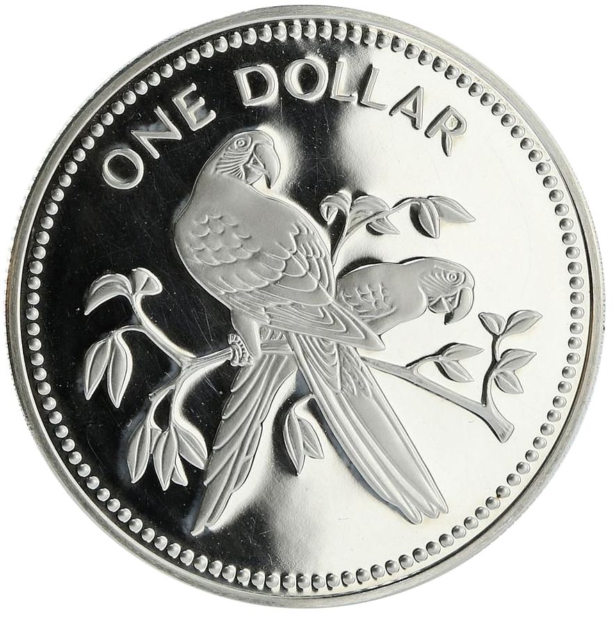 1 долар (червоний ара; срібло) 1974 – 1981 Беліз