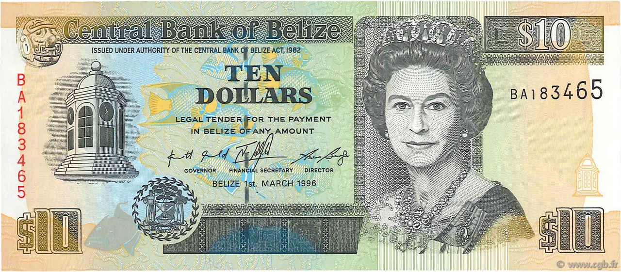 10 доларів — Єлизавета II (сегментована захисна нитка) 1996 – 1996 Беліз