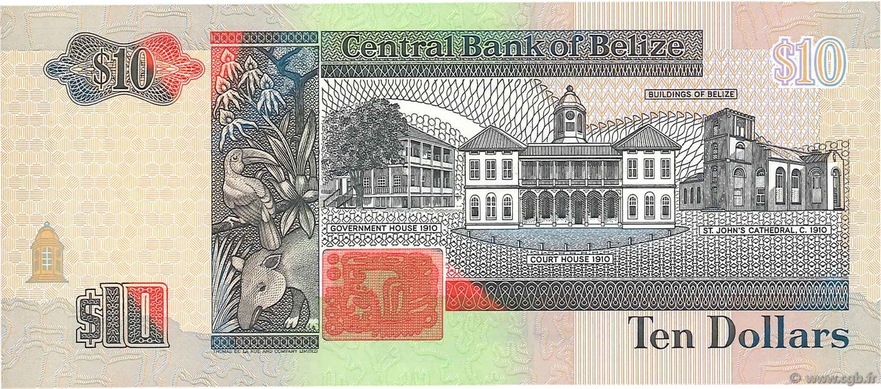 Опис: Чорний друк; багатоколірний піддрук; чорні та червоні серійні номери. Попереду зображено бюст королеви Єлизавети II в діадемі Володимира в центрі праворуч. Годинникова вежа будівлі суду міста Беліз ліворуч, королева-риба-спусковий гачок (Balistes vetula) та королева-риба-ангел (Holacanthus ciliaris) у центрі. Герб Белізу та срібна риба, звернена ліворуч, у нижньому лівому куті. Нефритове головне у верхньому лівому куті. Годинникова вежа будівлі суду міста Беліз, прозора, у нижньому правому куті. Віконний захисний нитка у центрі.
