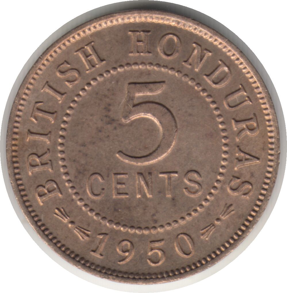 5 центів — Георг VI (без напису «Король та імператор») 1949 – 1952 Британський Гондурас