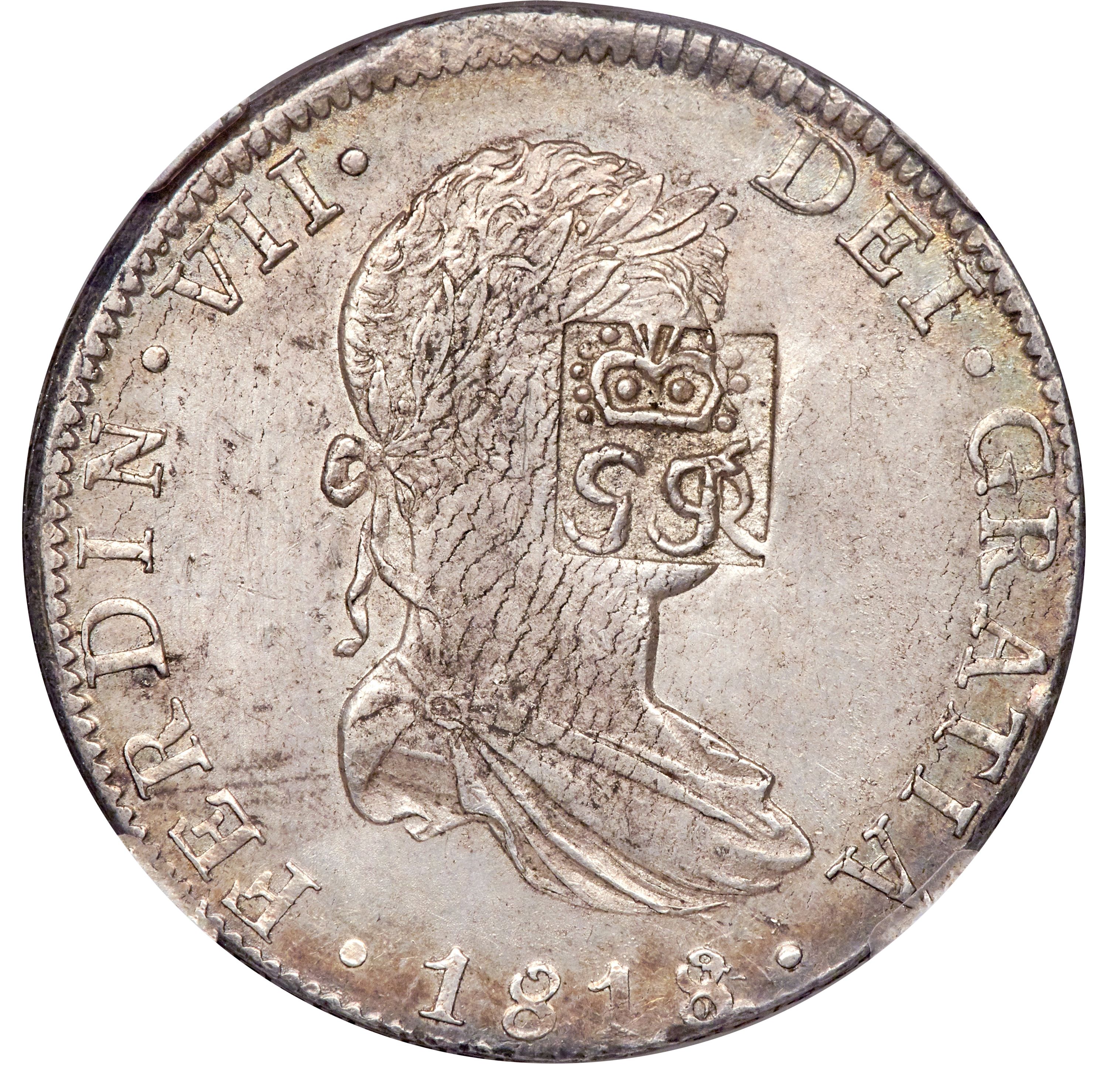 6 шилінгів 1 пенні — Георг III (FERDIN VII DEI GRATIA; прямокутне заглиблення; з контрамаркою) 1810 – 1818 Британські поселення в затоці Гондурас
