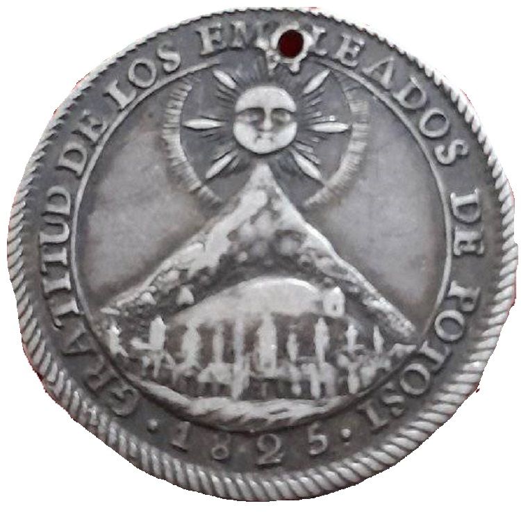 Опис: Аверс із зображенням пагорба Потосі, біля підніжжя якого розташоване місто, а над ним — сяюче сонце в оточенні напису.