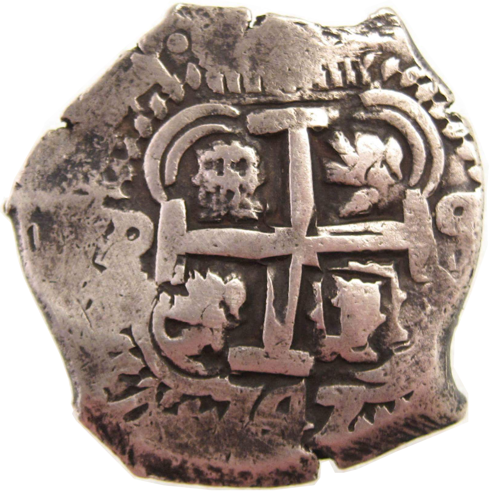 Опис: Стовпи Геркулеса підносяться над хвилями з прапором, на якому написано «PLVS VLTRA». Знак монетного двору P у верхньому лівому та нижньому правому кутах стовпів, а знаки пробірників — у верхньому правому та нижньому лівому кутах. Номінал «8» у верхній частині між флер-де-ліс стовпів, трохи нижче корони. Тризначна дата між стовпами трохи вище хвиль. Все це в оточенні облямівки у вигляді мотузки з написом навколо.