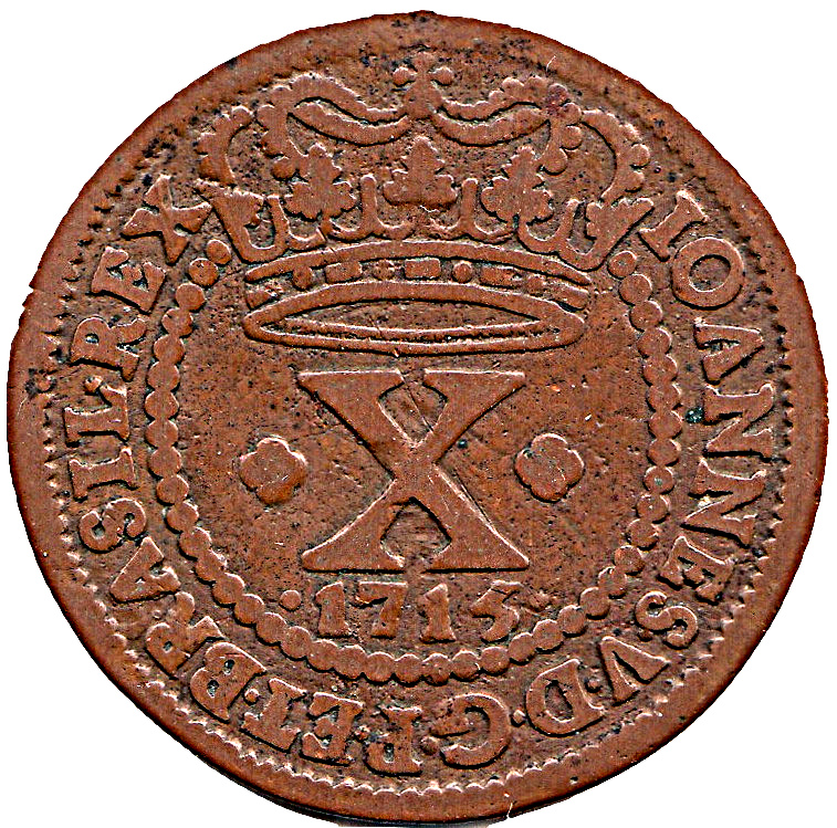 10 реалів — Жуан V (корона з 4 арками; Лісабон) 1715 – 1720 Бразилія