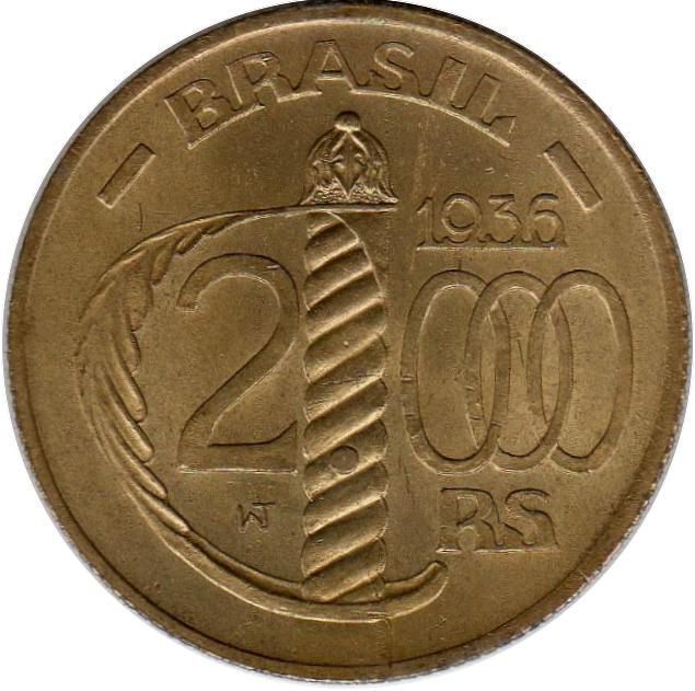 2000 реалів (кругла форма) 1936 – 1938 Бразилія