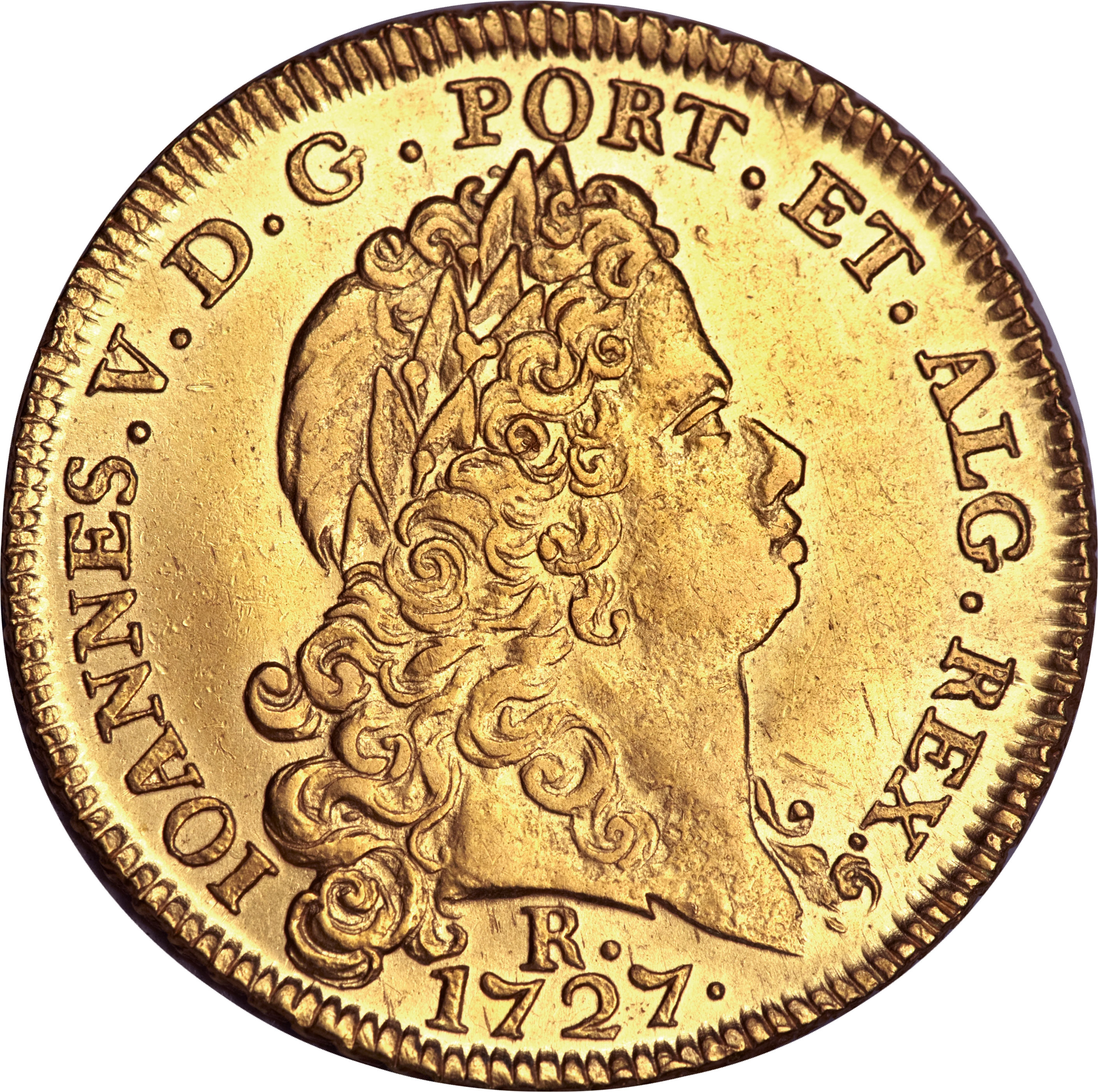 6400 реалів — Жуан V (1-й тип щита; Ріо-де-Жанейро) 1727 – 1731 Бразилія