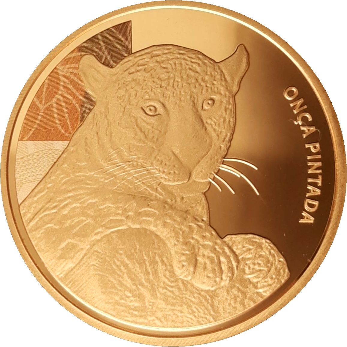 Опис: Зображення ягуара праворуч на правій частині банкноти номіналом 50 реалів. Праворуч від ягуара назва тварини португальською мовою: ONÇA PINTADA.