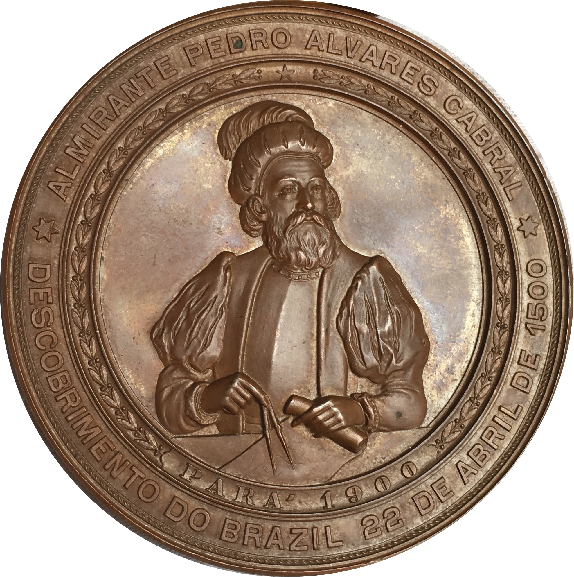 Опис: Полуфігура Педро Альвареса Кабрала в обладунках і капелюсі, оточена лавровим вінком.