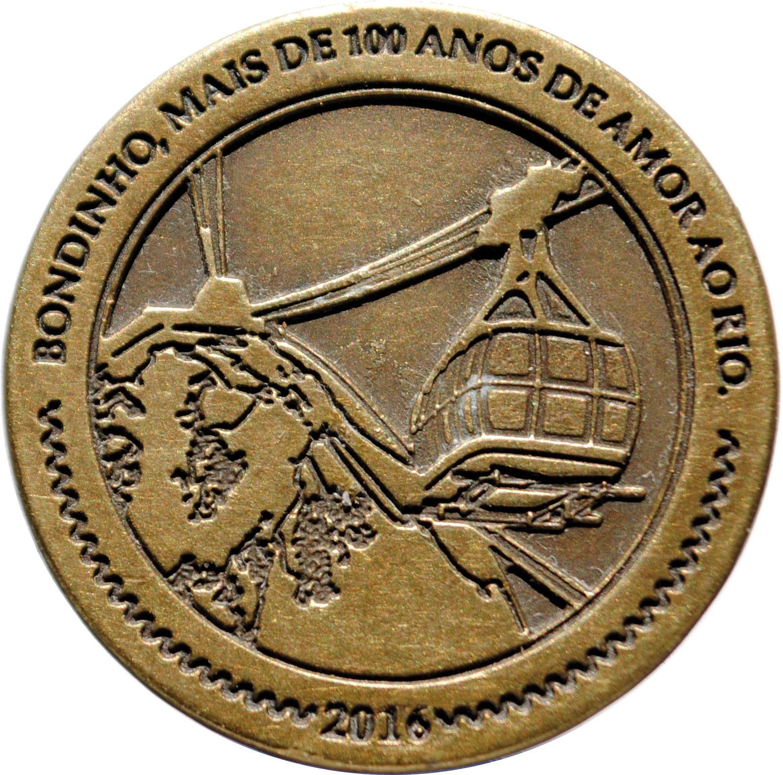 Опис: Відомий канатний транспорт Bondinho, що піднімається до гори Цукрова Голова, з написом португальською мовою «BONDINHO, MAIS DE 100 ANOS DE AMOR AO RIO» (BONDINHO, БІЛЬШЕ 100 РОКІВ ЛЮБОВІ ДО РІО). Вказано рік випуску — 2016.